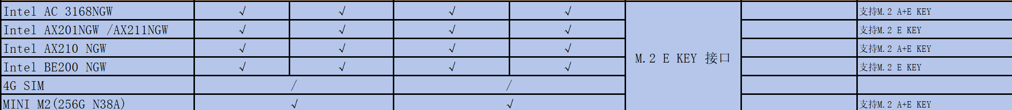 它是全协议的。支持CNVI和PCIe以及纯USB协议的各种网卡或者蓝牙或者安装硬盘- 0Answer